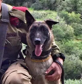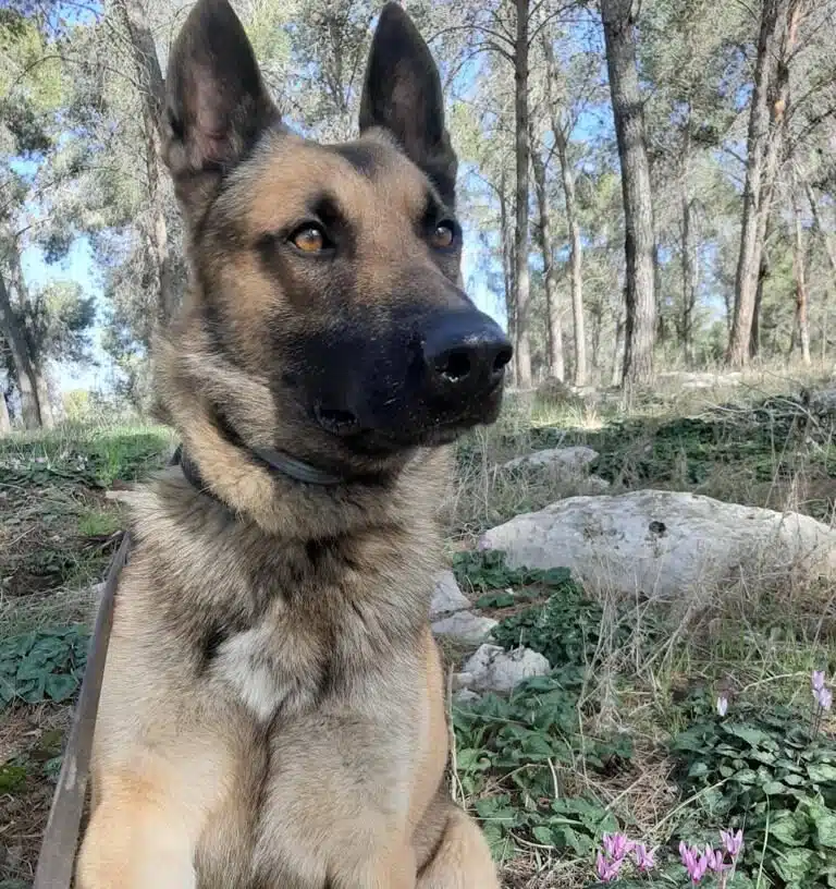 כלב מדהים וטוב לב שהוכשר לזיהוי מטענים ואמצעי לחימה מרחוק.
